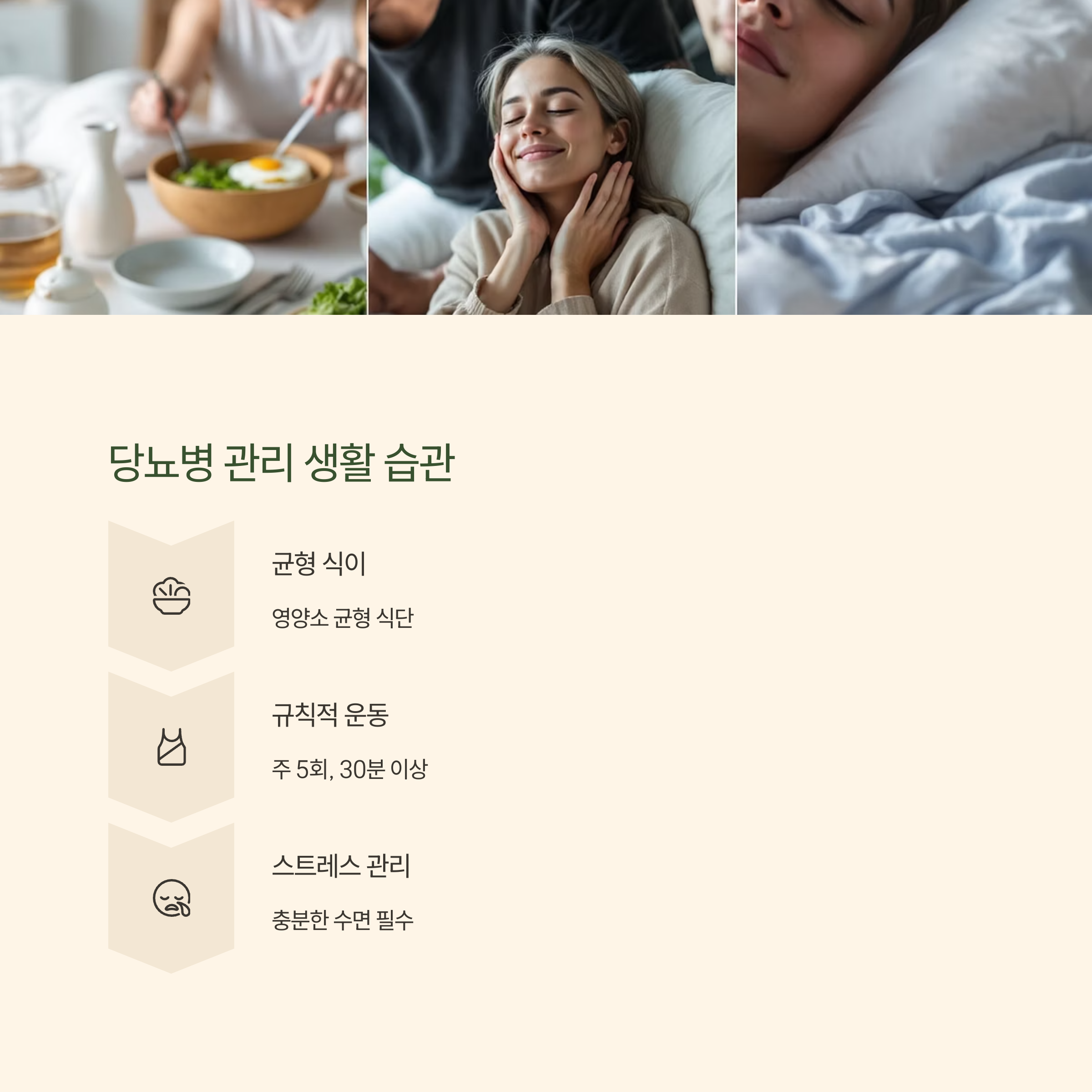 스트레스는 혈당 상승의 주요 원인이 될 수 있으므로, 명상, 요가, 충분한 수면 등으로 스트레스를 효과적으로 관리해야 합니다.