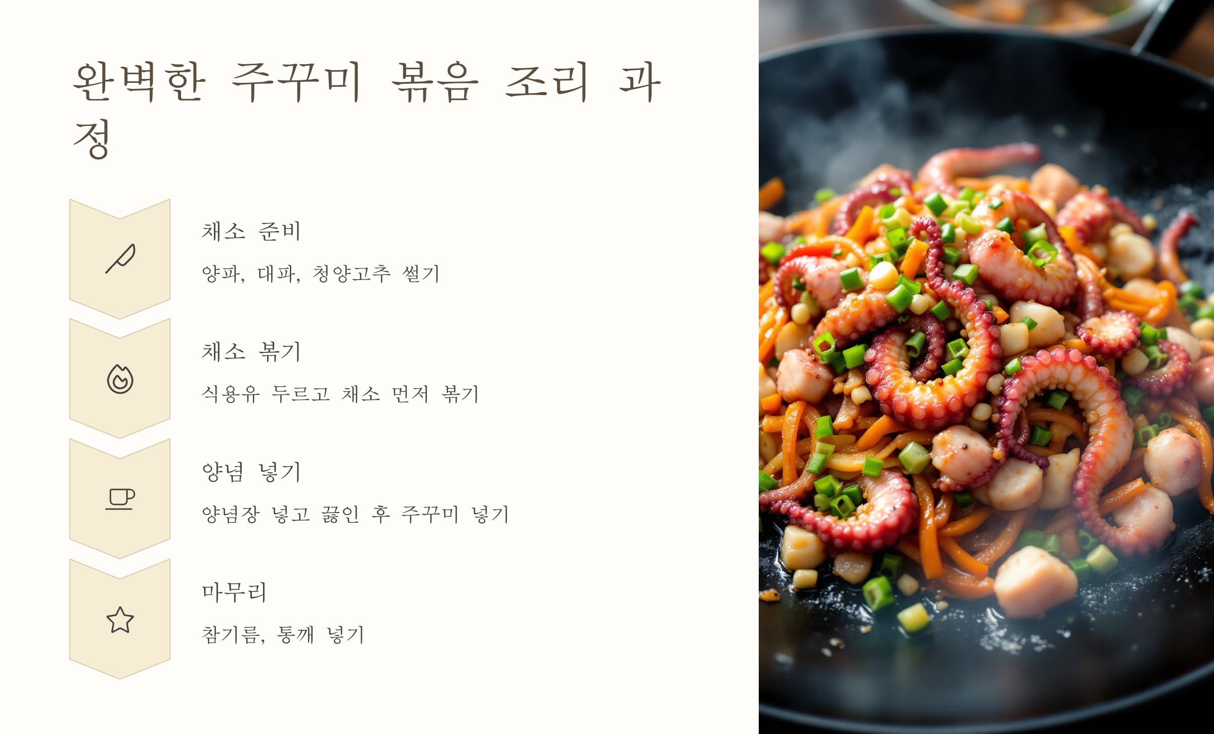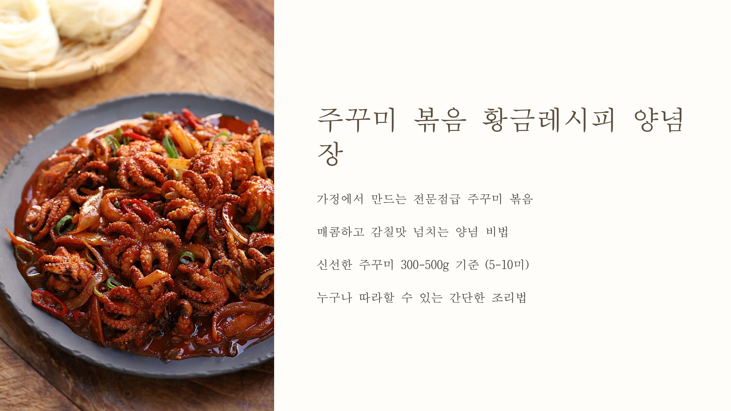 안녕하세요! 😊 오늘은 생각만 해도 군침 도는 메뉴, 바로 주꾸미 볶음 황금레시피를 여러분께 선보이려고 합니다.