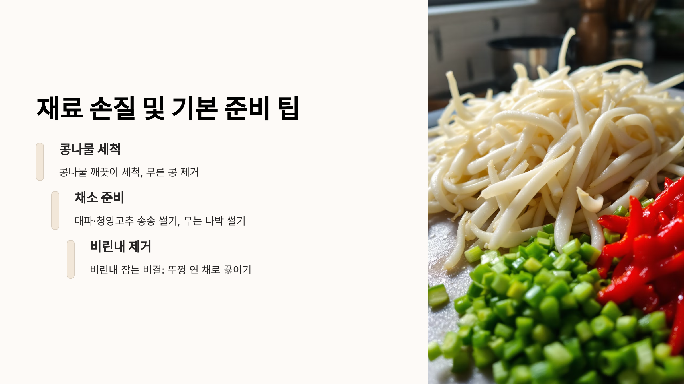 비린내 방지 삶을 때 뚜껑 일관성 유지, 신선한 콩나물 사용