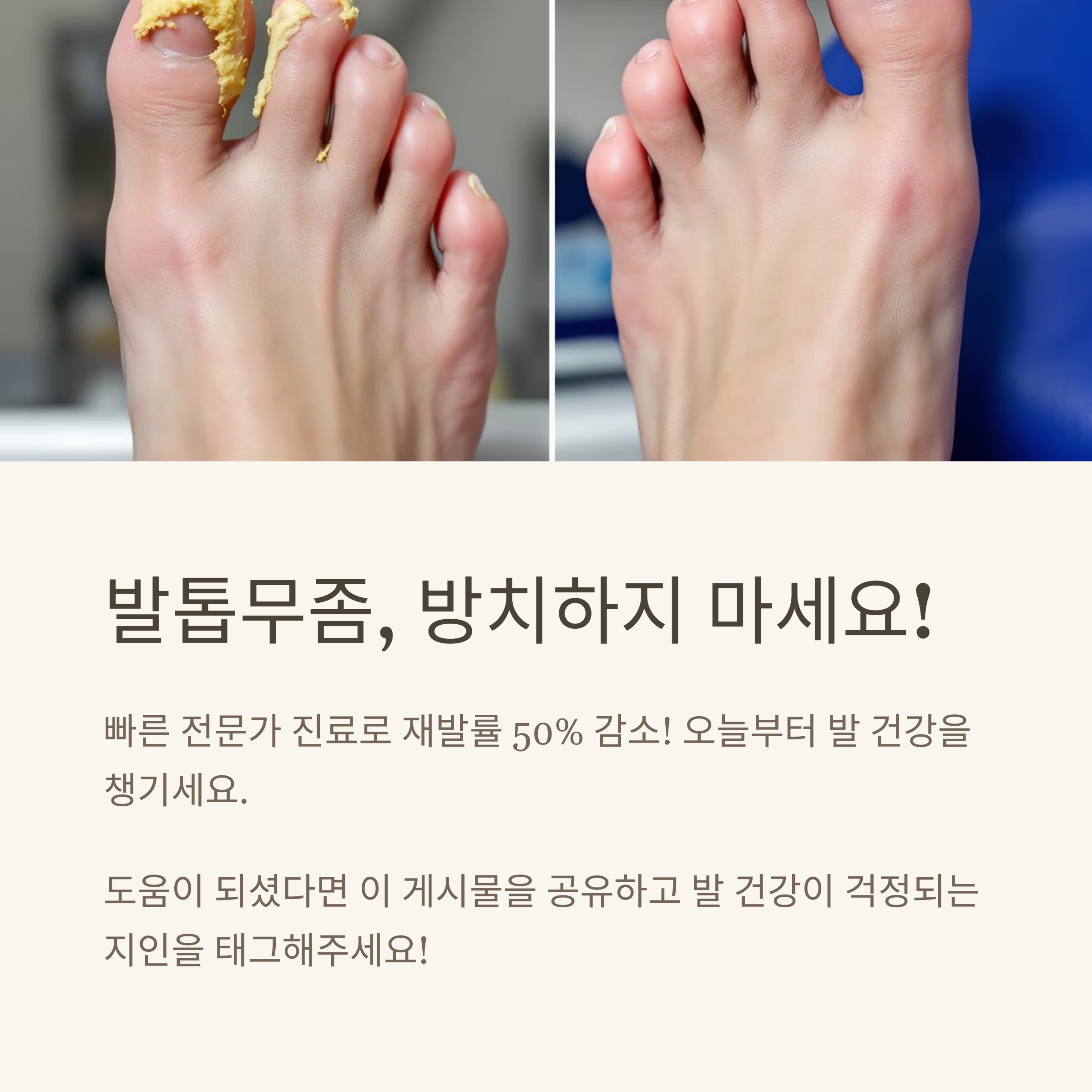 • 💅 **올바른 발톱 관리:** 발톱은 일자로 깎고, 너무 짧게 깎아 상처가 나지 않도록 주의합니다.