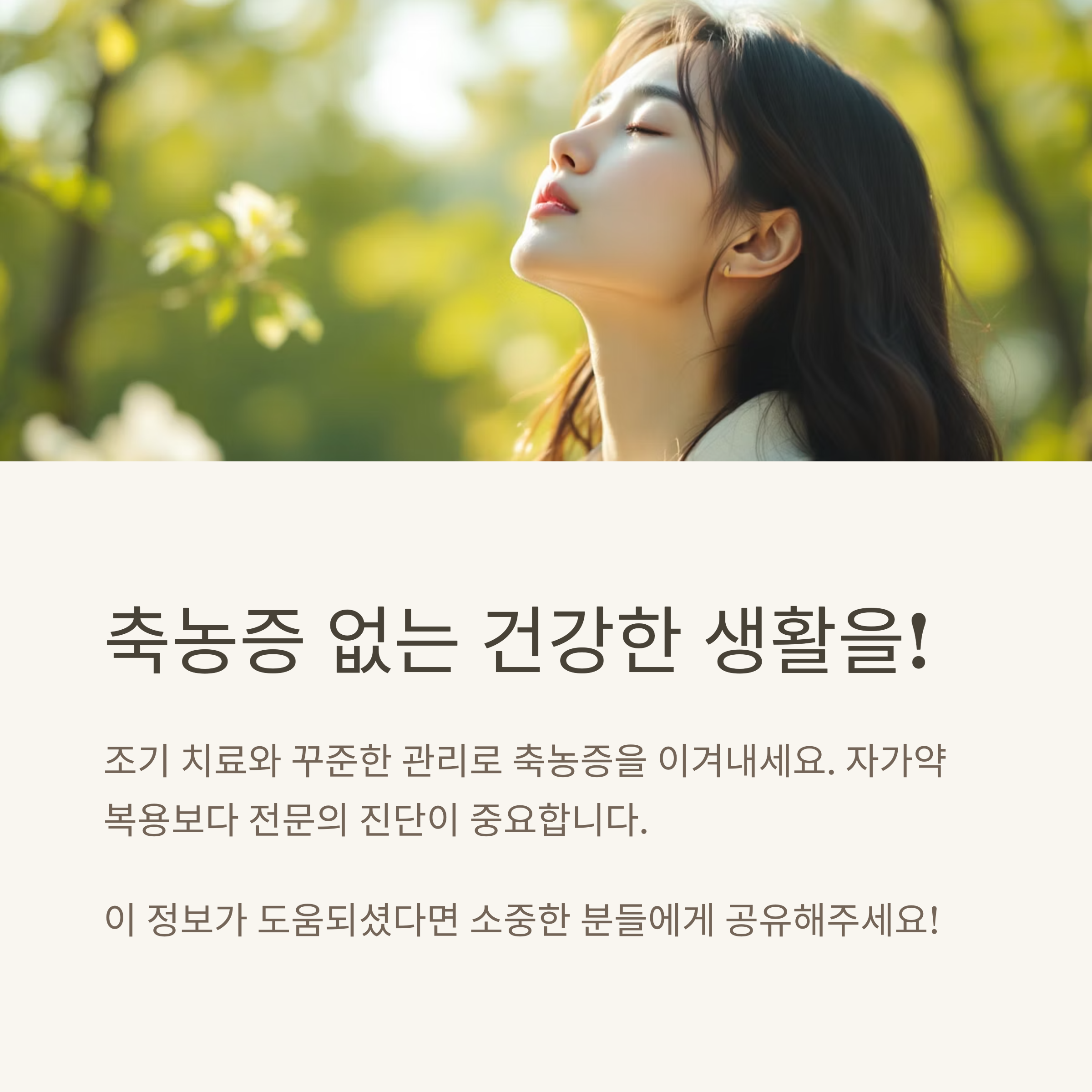 축농증 증상은 생활의 질을 크게 저하시킬 수 있지만, 현대 의학의 다양한 축농증 치료방법과 꾸준한 자가관리를 통해 건강한 비강 상태를 유지할 수 있습니다. 증상이 나타나면 조기에 적절한 조치를 취해 심각한 합병증을 예방하세요.