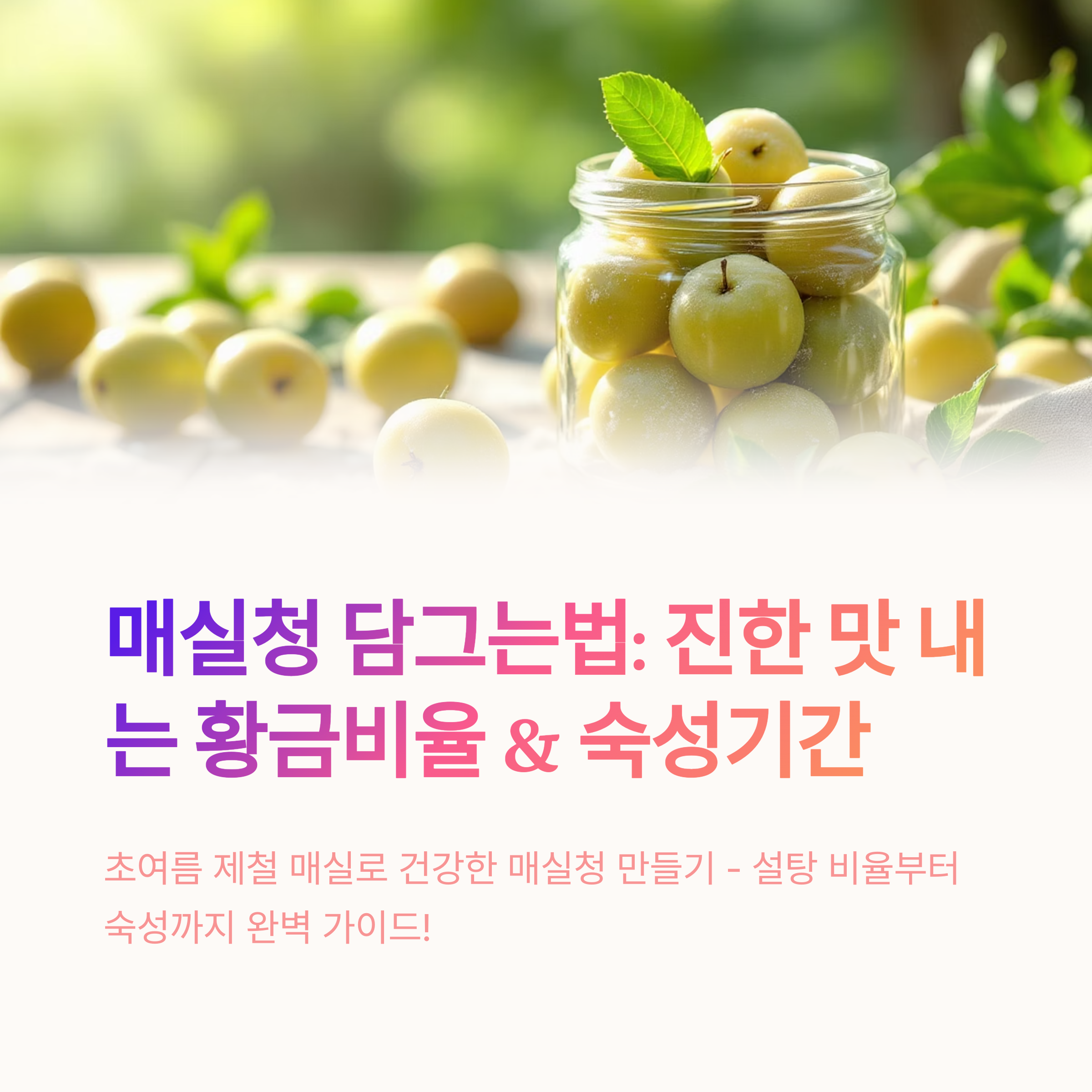 매실청 담그는법 궁금하시죠? 설탕 비율부터 최적의 매실청 숙성기간, 보관법까지! 초보도 전문가처럼 맛있는 매실청 만드는 모든 비법을 공개합니다. 지금 바로 확인하세요!