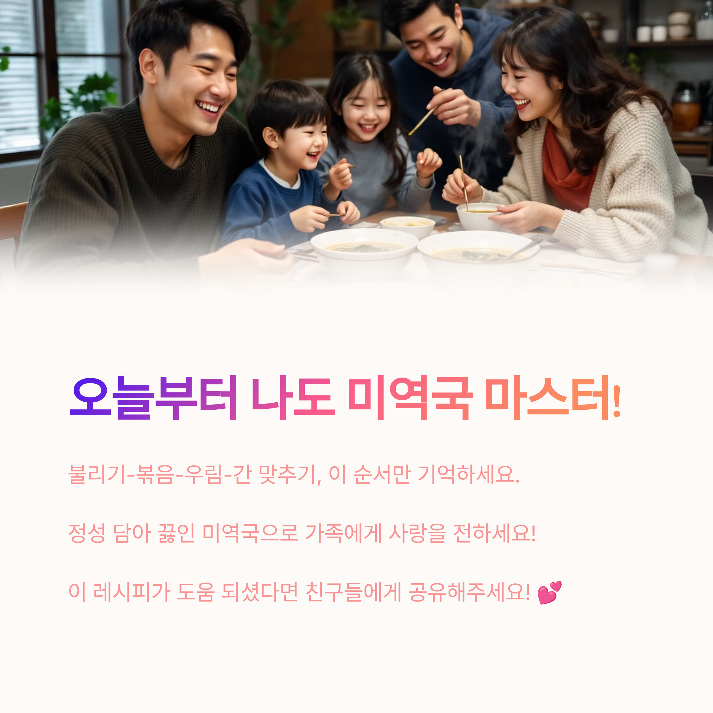 오늘은 여러분께 그동안 제가 차곡차곡 모아온 비법들을 아낌없이 풀어놓을까 합니다. 저만 따라오시면 누구든 깊고 진한 국물 맛의 미역국을 완성하실 수 있을 거예요. 😊