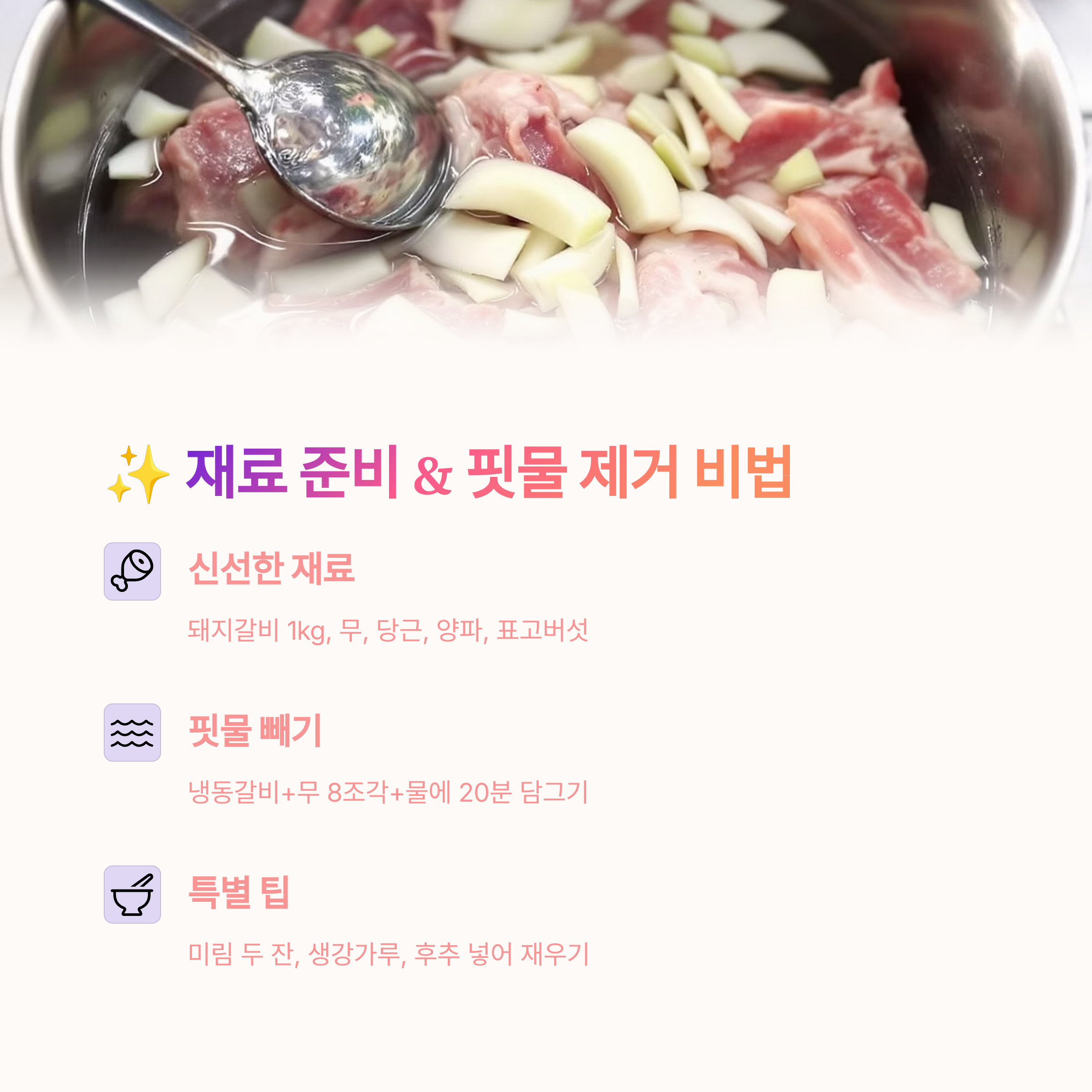 ✨ 맛있는 돼지갈비찜의 시작: 신선한 재료 준비