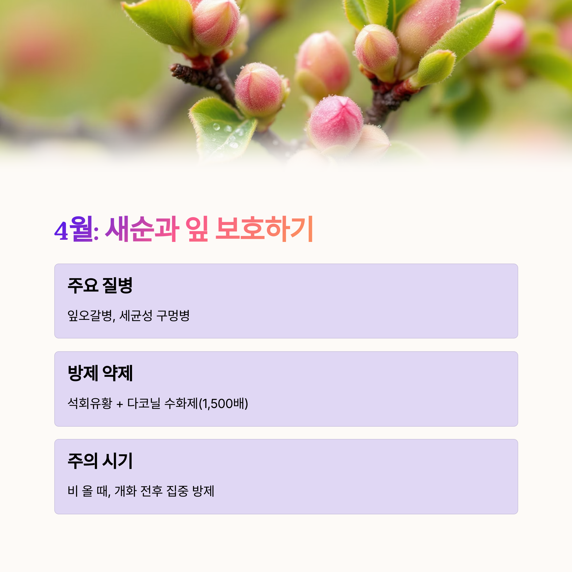 📅 월별/생육 주기별 복숭아 나무 병충해 방제 시기