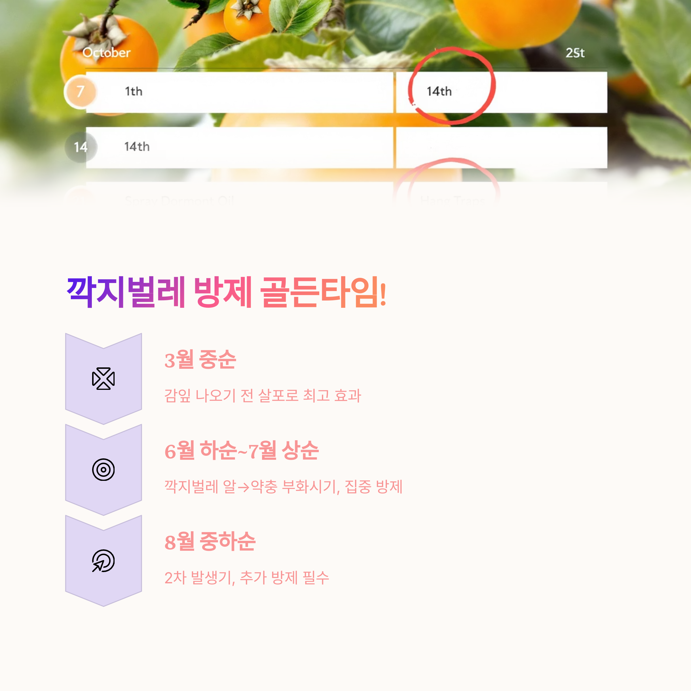 감나무 농사에서 깍지벌레는 정말 성가신 존재지만, 올바른 감나무 약치는 시기를 알고 적절히 대처한다면 충분히 관리할 수 있습니다.