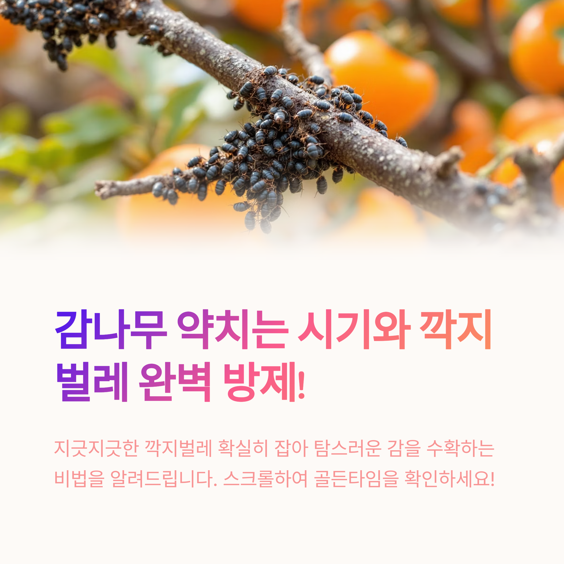가을이면 주황빛으로 탐스럽게 익어가는 감은 보는 것만으로도 마음이 풍족해지죠. 😊 하지만 맛있는 감을 수확하기까지는 여러 병해충과의 전쟁을 치러야 하는데요, 그중에서도 농민들의 애를 태우는 주범이 바로 '깍지벌레'입니다.