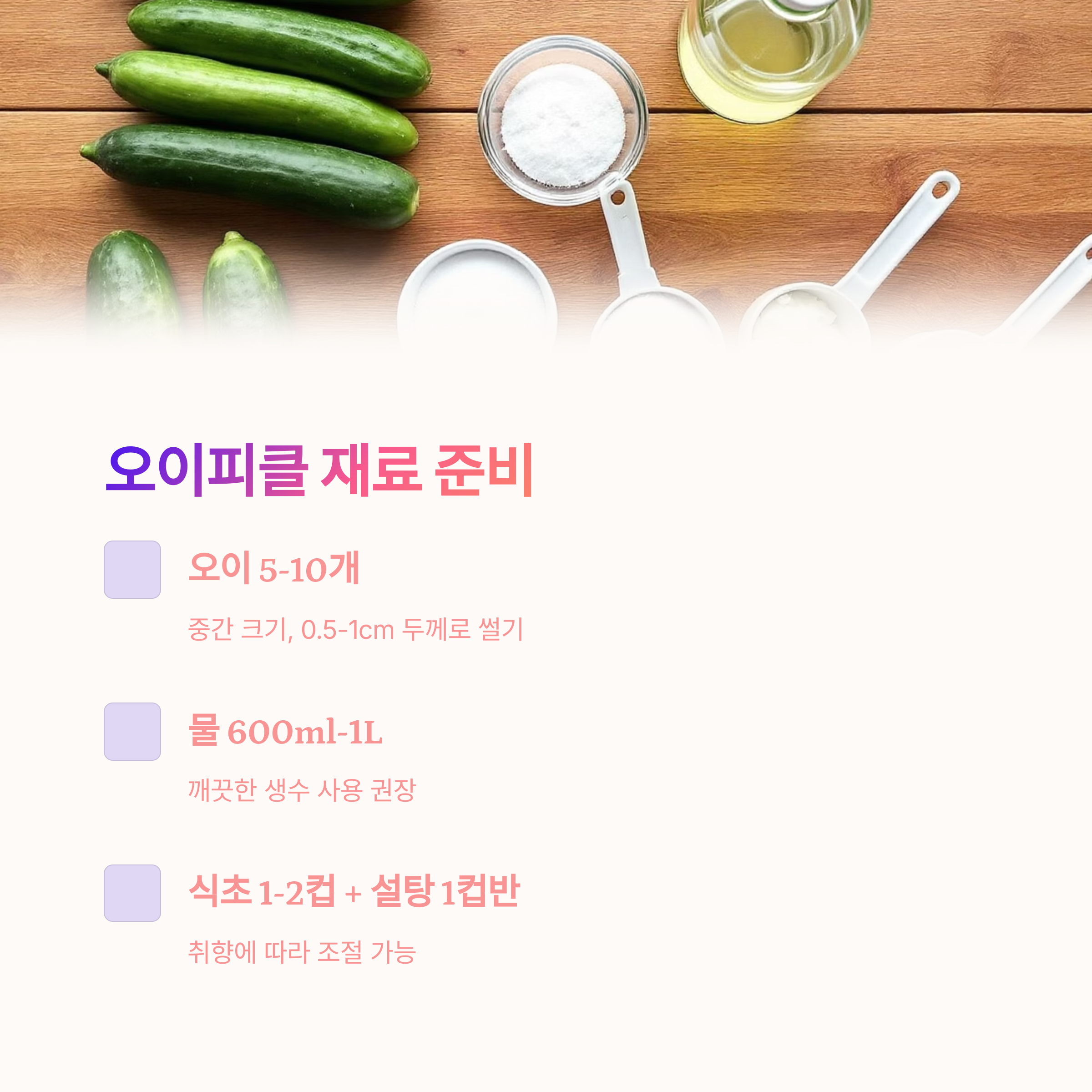 📌 오이피클 만들기에 필요한 재료들