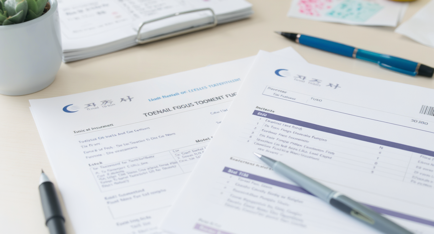 - 진단서: 피부과에서 발톱무좀 진단서(질병 코드 포함)를 받아야 해요.