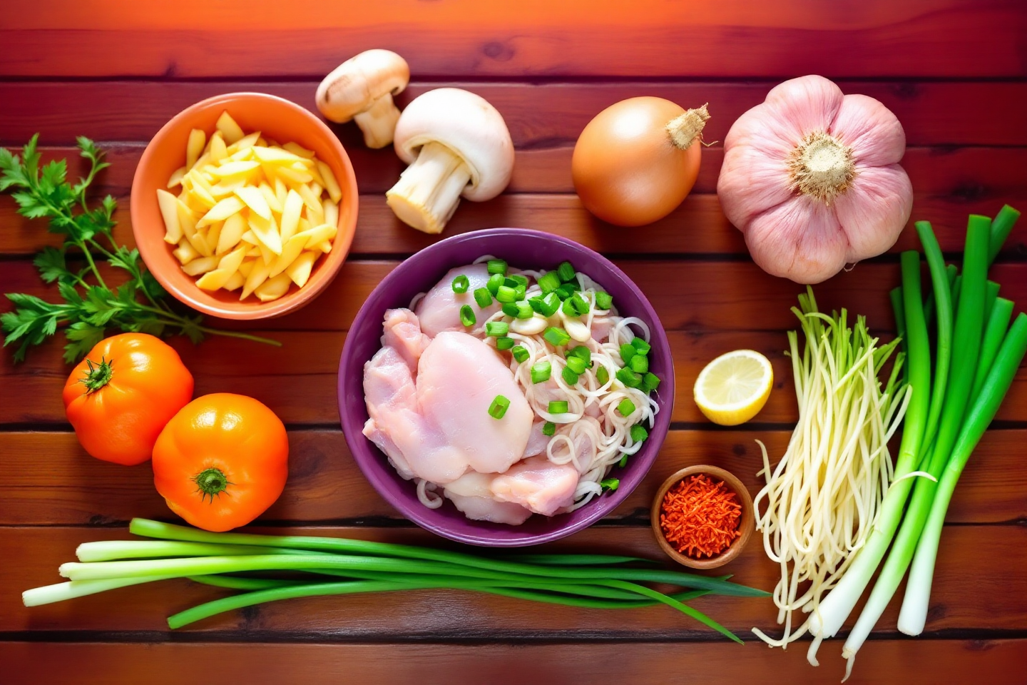 대파는 큼직하게 썰거나 반으로 갈라 5~6cm 길이로 썰어 준비합니다. 대파가 푹 익으면서 내는 단맛이 닭개장의 국물 맛을 한층 더 풍부하게 만들어준답니다. 특히 닭개장 고사리 손질은 질긴 부분을 잘라내고 부드러운 부분만 사용하는 것이 식감을 살리는 포인트입니다.