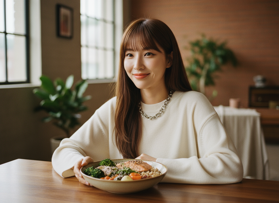 같은 음식을 먹더라도 먹는 순서에 따라 혈당 상승 속도가 달라집니다. 가장 효과적인 방법은 채소나 샐러드를 먼저 먹고, 그다음 단백질인 고기나 생선을 먹은 후 마지막에 밥이나 면 같은 탄수화물을 섭취하는 거예요. 식이섬유가 풍부한 채소를 먼저 먹으면 위에서 젤 형태의 막을 만들어 탄수화물의 흡수 속도를 늦춰줍니다.