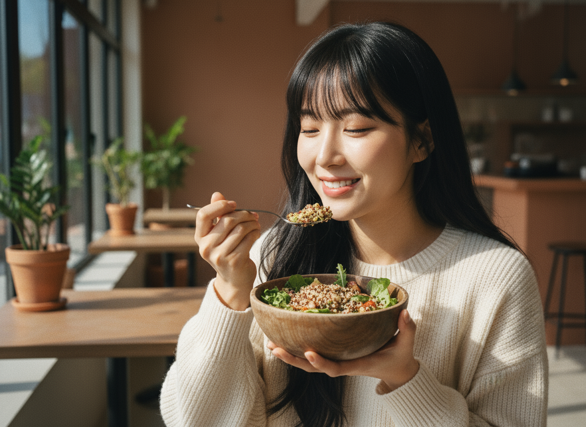 빨리 먹는 습관은 혈당을 급격히 올리는 주범입니다. 최소 20분 이상 천천히 씹어 먹으면 포만감도 빨리 느껴지고 혈당 상승도 완만해져요. 한 입 먹고 젓가락을 내려놓는 습관을 들이면 자연스럽게 식사 속도가 느려집니다.