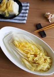 백김치의 식감은 이 '절이기' 단계에서 결정됩니다. 너무 오래 절이면 물러지고, 덜 절이면 배추에서 풋내가 날 수 있어요.