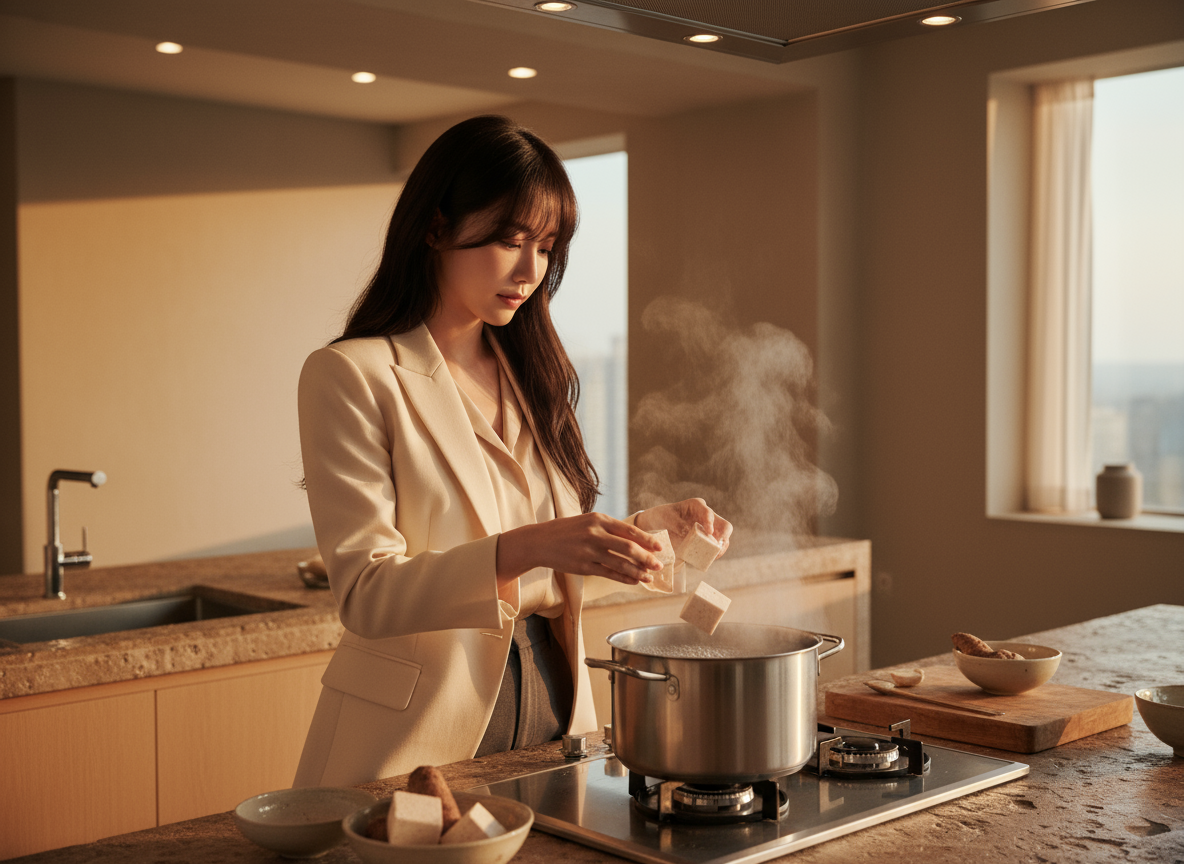 A: 토란을 처음부터 넣고 너무 오래 끓여서 그럴 수 있어요. 껍질을 벗기고 데치는 과정(토란 손질법 3단계)을 거치면 조직이 단단해져서 덜 부서집니다. 또한, 국물이 끓은 후에 토란을 넣고 약 20분 정도만 끓이는 것이 좋습니다. 이것이 토란국 맛나게 끓이는법의 식감을 살리는 방법입니다.