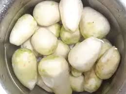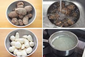 쌀뜨물이 토란의 아린 맛과 떫은맛을 잡아주는 역할을 해요. 쌀뜨물이 없다면 물에 소금을 1~2스푼 정도 풀어서 사용하셔도 좋습니다. 이 상태로 최소 30분 이상 담가둡니다.