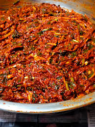 A: 위 팁에서 말씀드렸듯이, 뜨거운 찹쌀풀에 고춧가루를 섞거나, 고춧가루가 충분히 불기도 전에 다른 재료와 섞으면 색이 탁해질 수 있습니다. 꼭 차가운 찹쌀풀에 고춧가루를 먼저 불리는 과정을 거쳐보세요!