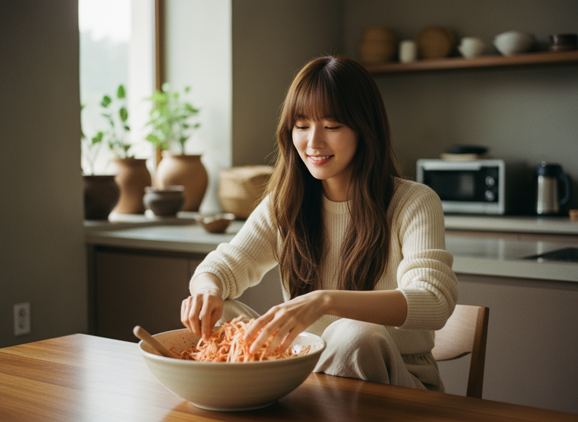 A: 바로 먹어도 맛있지만, 진짜 맛은 숙성을 거쳐야 하죠. 김치냉장고 기준으로 약 2~3주 정도 지나 유산균이 활발하게 활동을 시작할 때가 가장 시원하고 맛있는 것 같아요. 물론 이건 저희 집 기준이고, 가정의 보관 환경과 김장김치 양념 황금레시피의 젓갈, 소금 양에 따라 조금씩 달라질 수 있습니다.