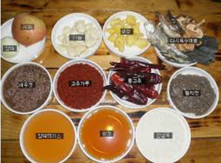 | 젓갈 | 멸치액젓 500ml, 새우젓 400g (육젓 또는 오젓) | 새우젓은 곱게 다져서 사용합니다. |