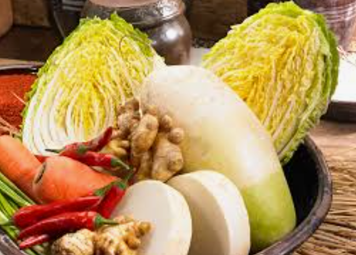 | 채소 | 무 (대) 3~4개 (약 4kg), 쪽파 1단, 미나리 1단, 갓 1단 | 무는 채 썰어 사용하고, 나머지는 3~4cm 길이로 썹니다. |