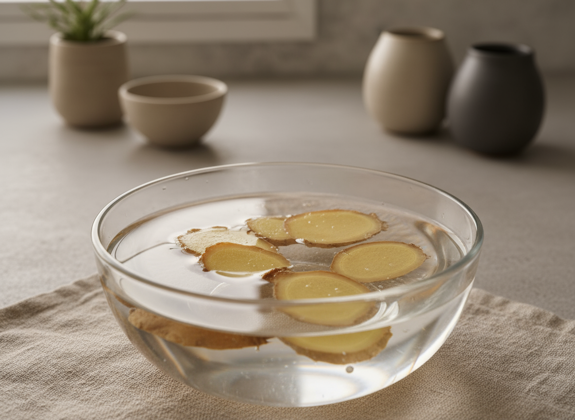 껍질을 깐 생강은 편으로 썰거나, 믹서로 갈거나, 착즙을 합니다. 여기서 가장 중요한 포인트! 쓴맛과 아린 맛을 제거하기 위해 찬물에 1~2시간 정도 담가두는 것이 좋습니다.