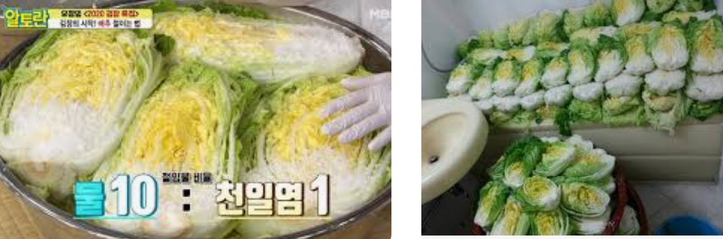 김장 맛의 8할은 절이기에 달렸다는 말이 있을 정도로 중요한 과정입니다. 배추를 절이는 이유는 삼투압 현상을 이용해 배추의 불필요한 수분을 빼내고, 아삭한 식감을 살리기 위함인데요. 이 과정에서 실수가 생기면 김장김치가 무르는 이유가 됩니다.