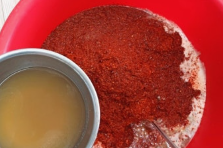 고춧가루가 부족하면 김치 색이 연하고 매운맛도 약해집니다. 절임배추 20kg 기준으로 최소 1kg 이상은 넣어야 적당한 맛이 나는데요, 매운 맛을 선호하시면 1.2~1.5kg까지 늘려도 좋습니다. 김장김치 양념 황금레시피에서 고춧가루는 맛과 색을 결정하는 핵심 재료입니다.