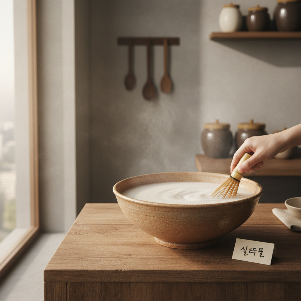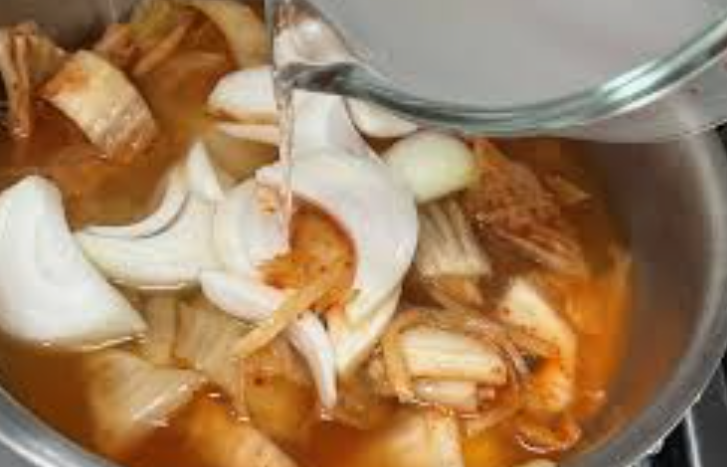 육수가 없다면 쌀뜨물(두 번째 씻은 물)을 사용해 보세요. 쌀뜨물의 전분기가 국물을 살짝 걸쭉하고 부드럽게 만들어주어 깊이 있는 맛을 낼 수 있습니다. 김치찌개 끓이는 순서 중 육수 단계에서 쌀뜨물 사용을 고려해 보세요.