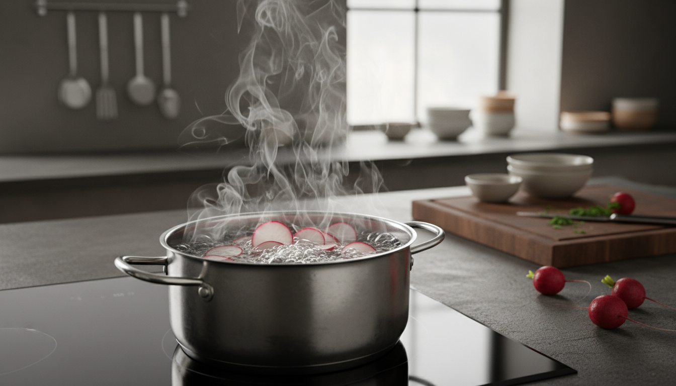 무를 처음부터 푹 끓여야 무의 당분이 충분히 우러나와 국물에 은은하고 자연스러운 단맛을 부여합니다. 끓기 시작한 후 15분 정도 지나면 멸치와 다시마를 건져내고, 무만 남겨둡니다. 이 육수가 대구탕 황금 레시피의 기본 토대가 됩니다.