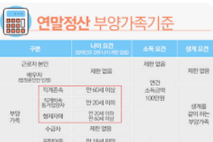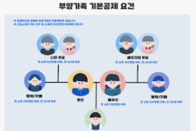 | 형제자매 | 본인 및 배우자의 형제자매 | 만 20세 이하 또는 만 60세 이상 |