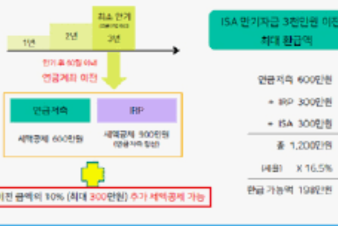 ISA 계좌는 최소 3년의 의무가입기간이 있습니다. 이 기간을 채워야 비과세 및 분리과세 혜택을 온전히 받을 수 있습니다. 만기 후에는 연장하거나, 연금계좌로 이전하여 추가 세액공제 혜택을 받을 수도 있습니다.
