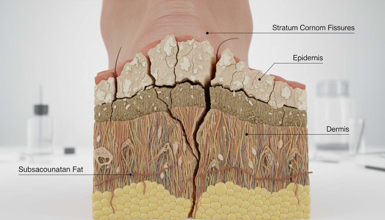 갈라짐이 심해져 진피층까지 균열이 생기면 걸을 때마다 바늘로 찌르는 듯한 고통을 느끼게 됩니다. 이때는 단순한 화장품이 아닌, 적절한 의약품이나 기능성 제품의 도움이 필요합니다.