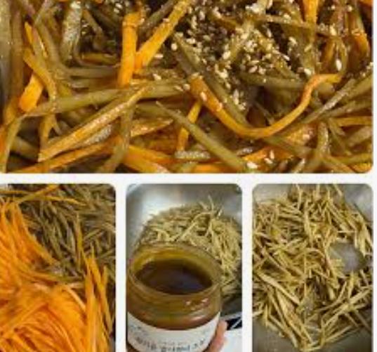 우엉이 살짝 투명해지고 숨이 죽을 때까지 정성껏 볶아주세요. 👩🍳