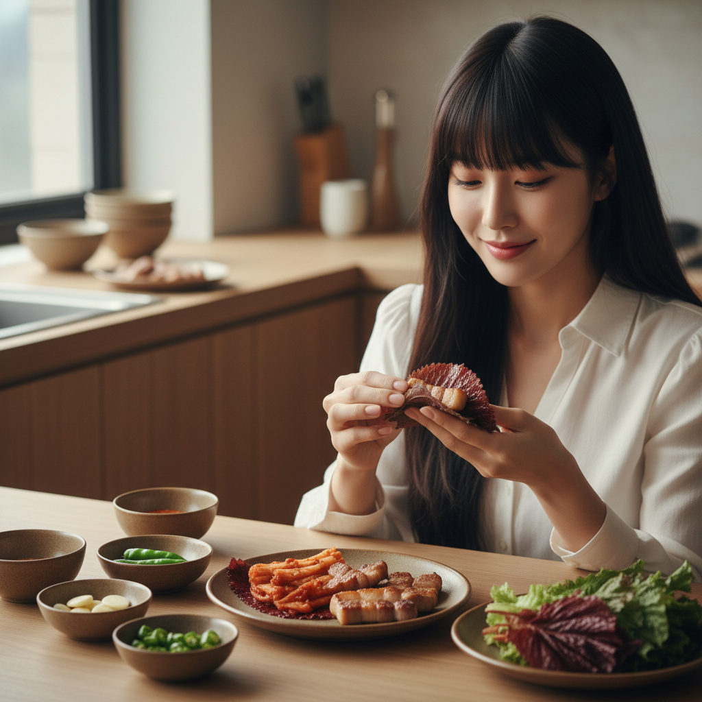 깻잎김치는 삼겹살이나 목살 같은 돼지고기와 궁합이 정말 좋습니다. 고기의 기름진 맛을 깻잎의 향긋함이 잡아주고, 매콤한 양념이 입맛을 돋워줘요. 구운 고기를 깻잎김치에 싸서 한입에 쏙 넣으면 그야말로 천국이죠.