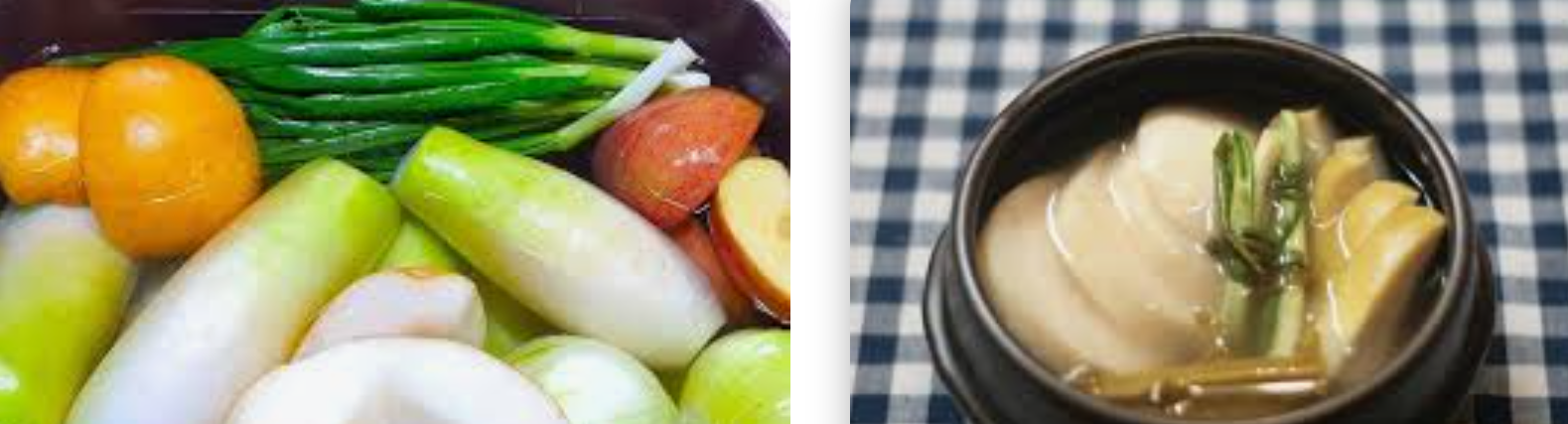 향신 채소 (다시백) 마늘 10쪽, 생강 2톨, 삭힌 고추 5개, 배 1/2개, 양파 1/4개