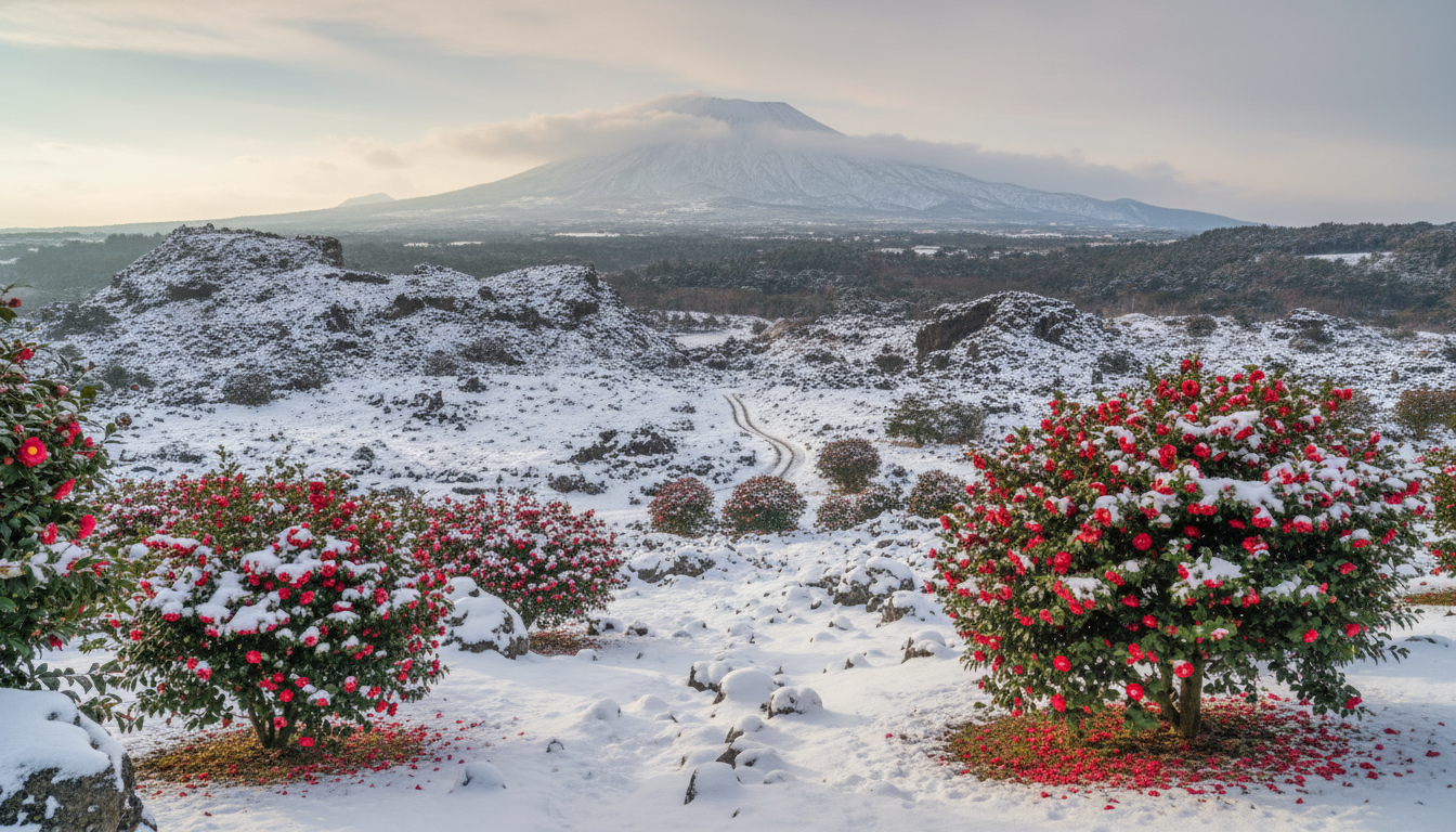 제주도만의 특별한 겨울 풍경으로는 동백꽃을 빼놓을 수 없죠. 카멜리아힐과 동백포레스트에서는 12월부터 2월까지 붉은 동백꽃이 만개하는데, 새하얀 눈과 붉은 동백꽃의 대비가 정말 환상적입니다.