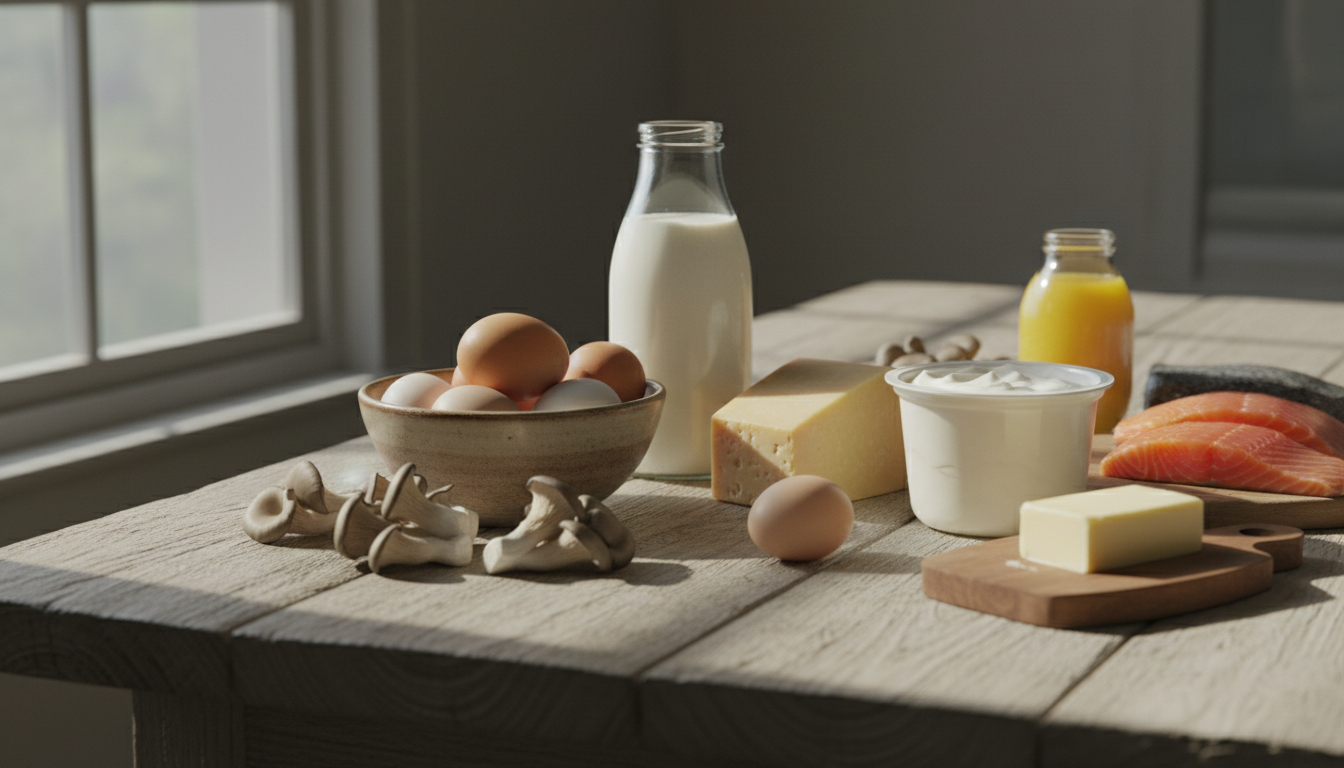 비타민D가 풍부한 음식이 도움이 됩니다. 연어, 고등어 같은 등푸른 생선, 계란 노른자, 우유, 버섯 등을 꾸준히 섭취하세요. 또한 칼슘이 풍부한 유제품도 함께 드시면 좋습니다.