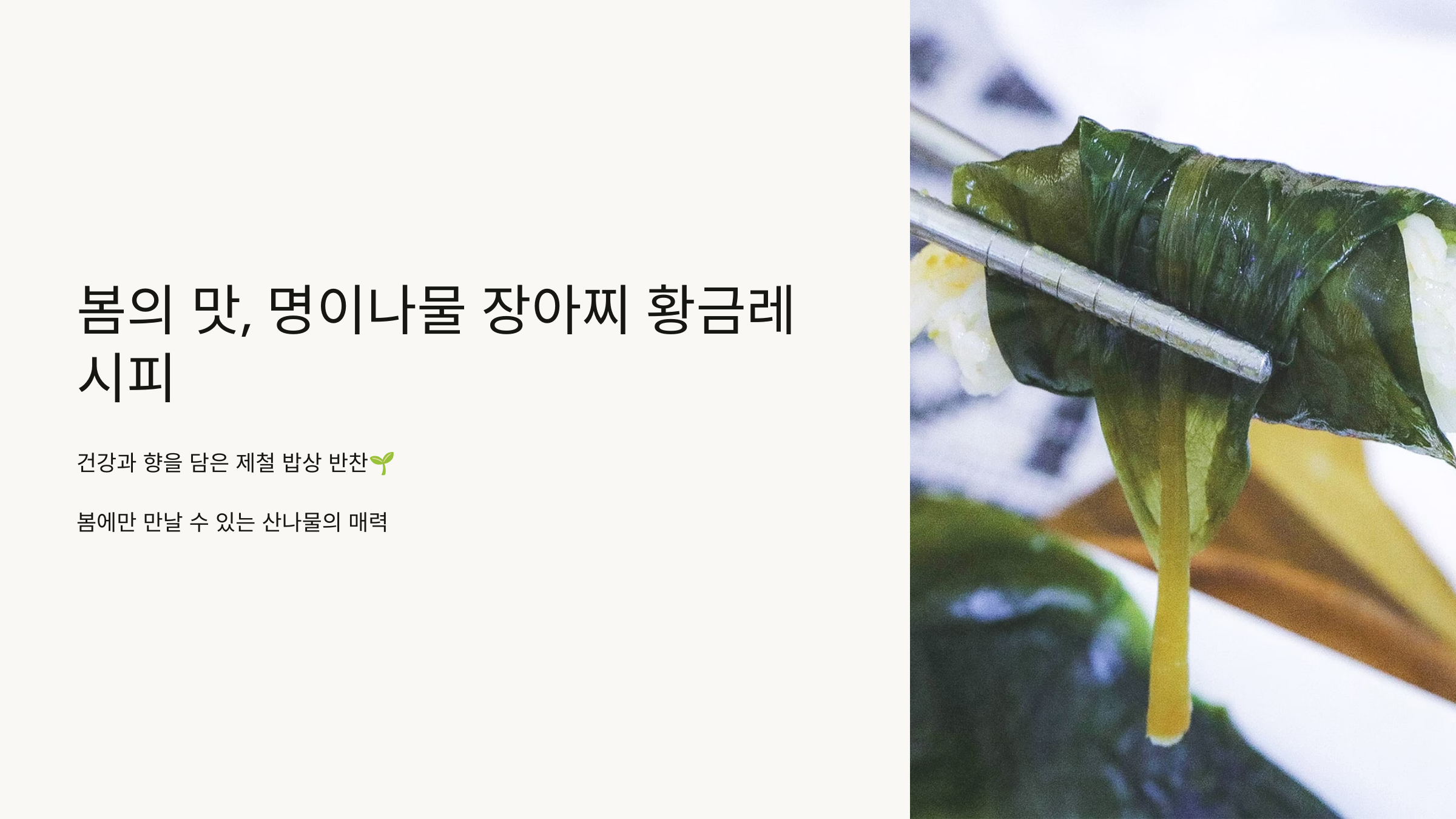 여러분도 이번 봄, 명이나물로 장아찌를 담가보세요. 가족들의 건강도 챙기고, 입맛도 돋우는 일석이조의 효과를 누려보시길 바랍니다. 다음에는 또 다른 봄나물 활용법으로 찾아뵙겠습니다! 😊