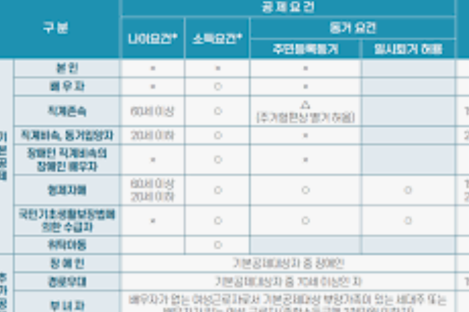 | 직계존속(부모, 조부모) | 만 60세 이상 | 1964년 12월 31일 이전 출생 |