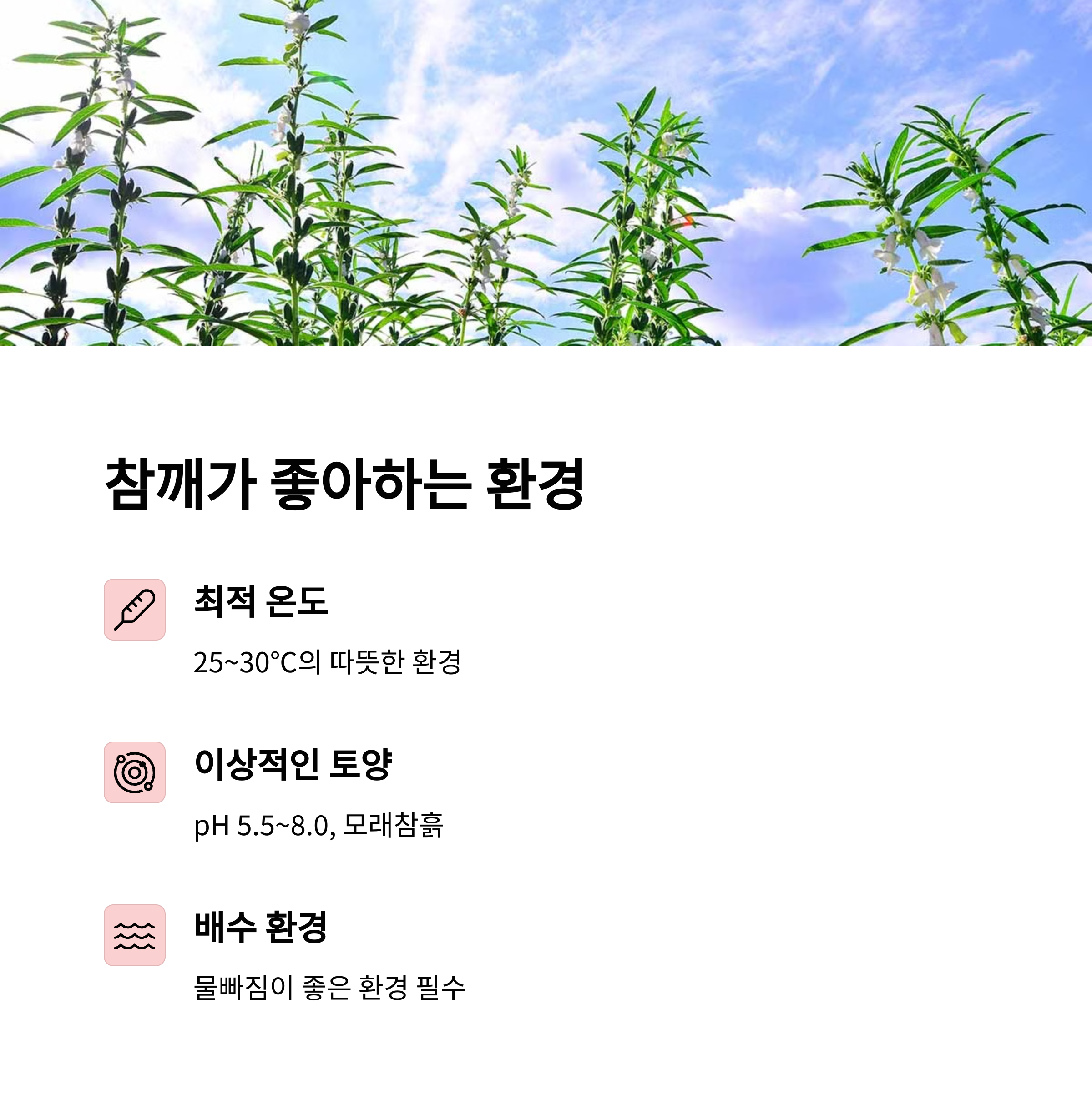 참깨는 햇볕이 잘 들고 물빠짐이 좋은 모래참흙이 이상적이죠.