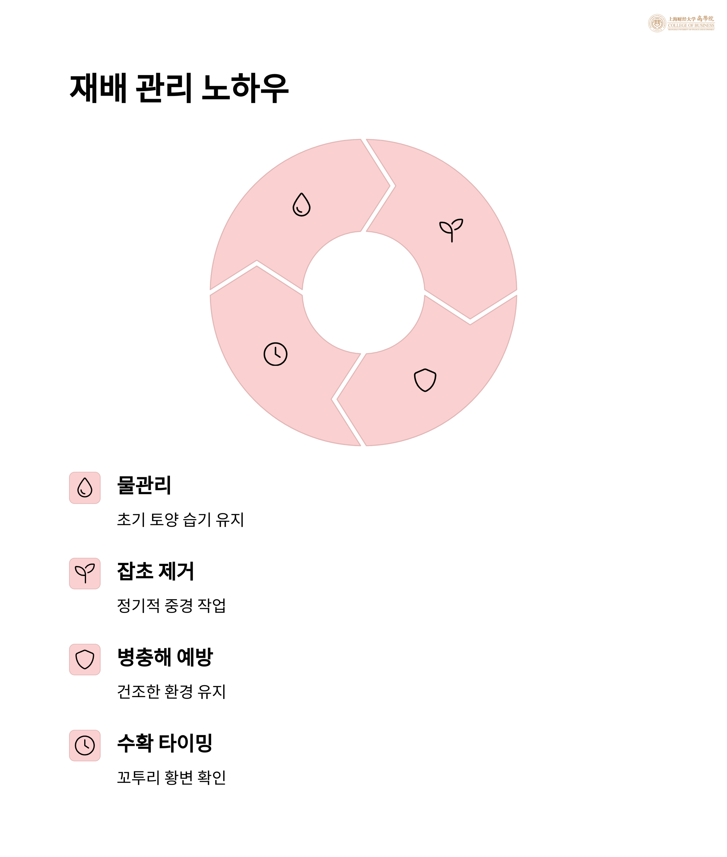 - 비료: 7월 중순 웃거름(질소 2kg/10a).