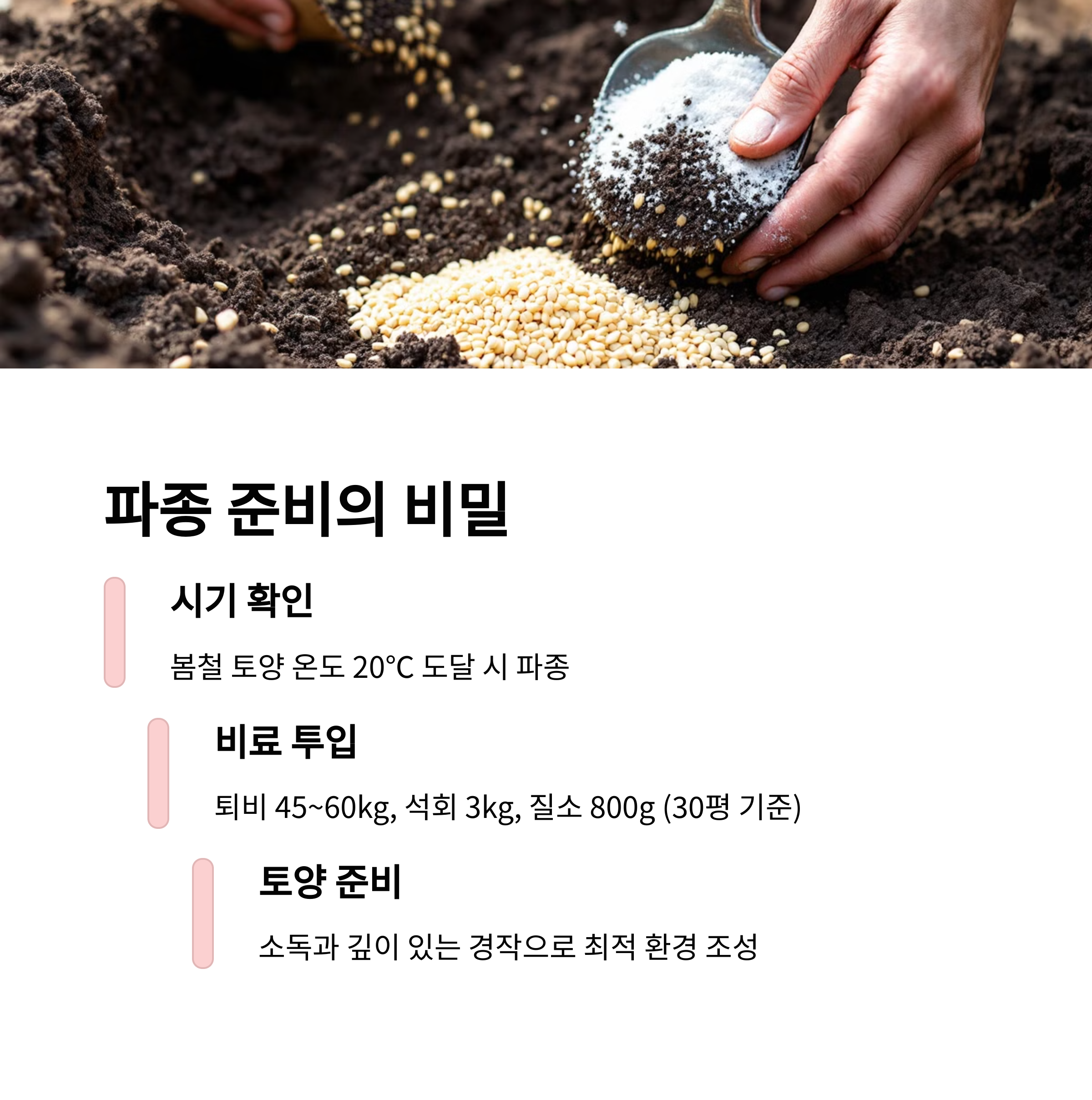 30평당 퇴비 45~60kg, 석회 3kg을 추천해요. 비료는 질소 800g, 인산 400g, 칼리 900g(30펑 기준)이 적당하죠.