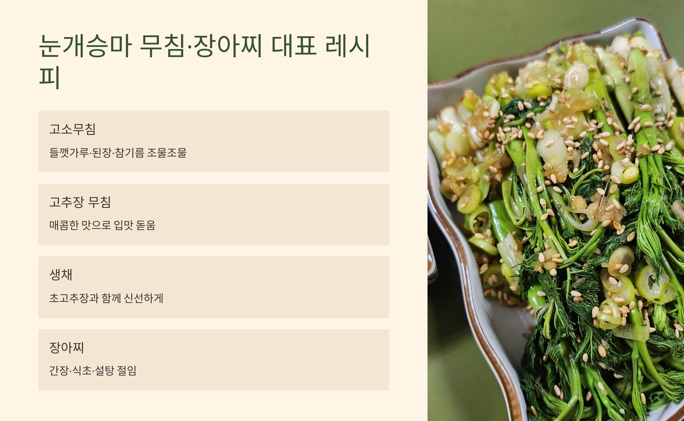 이 글에서는 눈개승마 요리법과 눈개승마 먹는법을 상세히 다루며, 손질부터 요리, 섭취 주의점까지 꼼꼼히 정리했다. 😊 나물무침, 장아찌, 육개장 레시피로 삼나물의 매력을 만나보자!