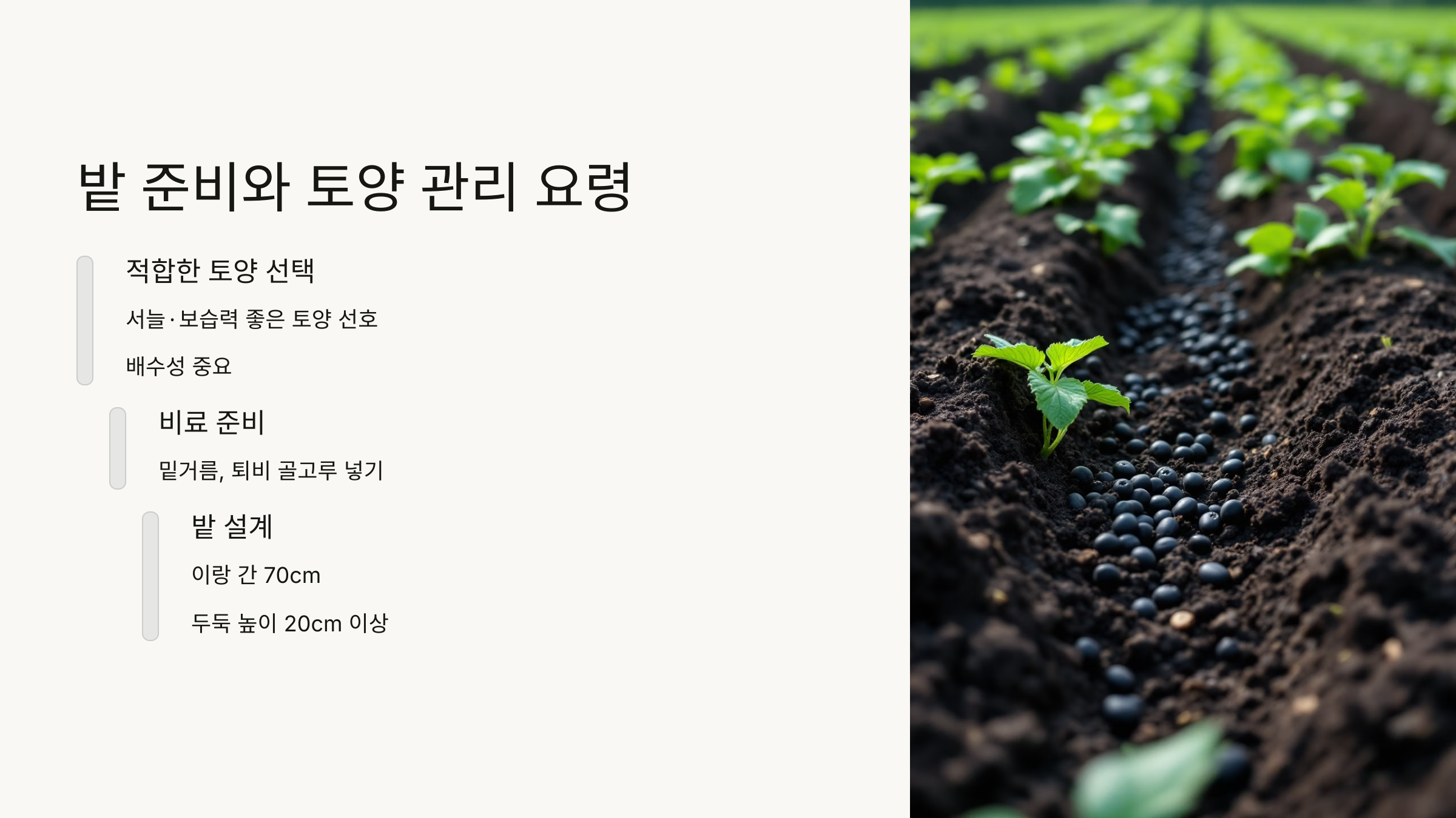 풍성한 서리태 수확을 위해서는 밭 준비가 중요합니다. 서리태를 심기 전에 밭을 어떻게 준비해야 하는지 알아보겠습니다.