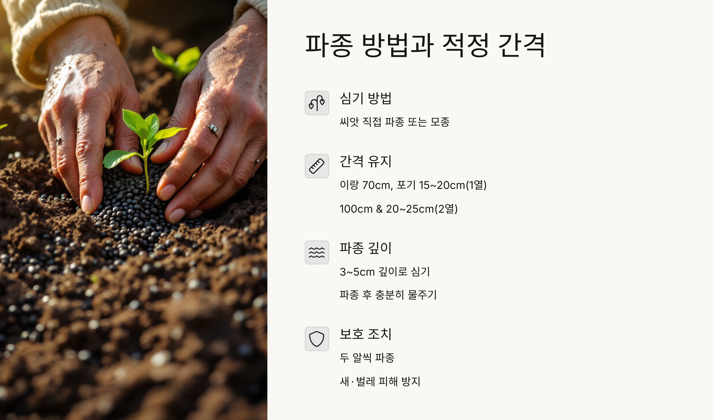 • 파종 2주 전 퇴비와 밑거름 준비