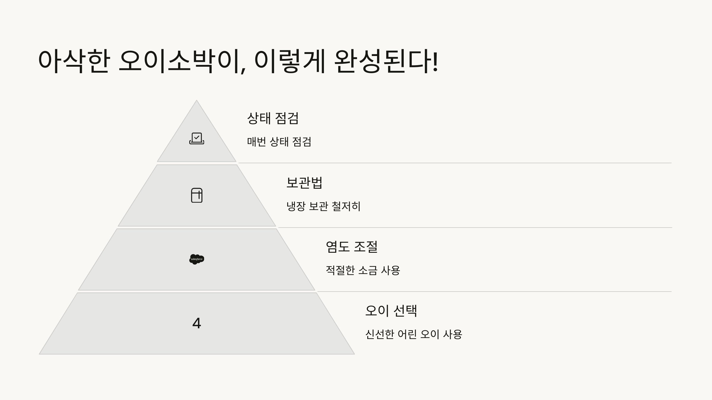 - 오이 1kg 기준 소금 30-50g(약 3-5%) 사용