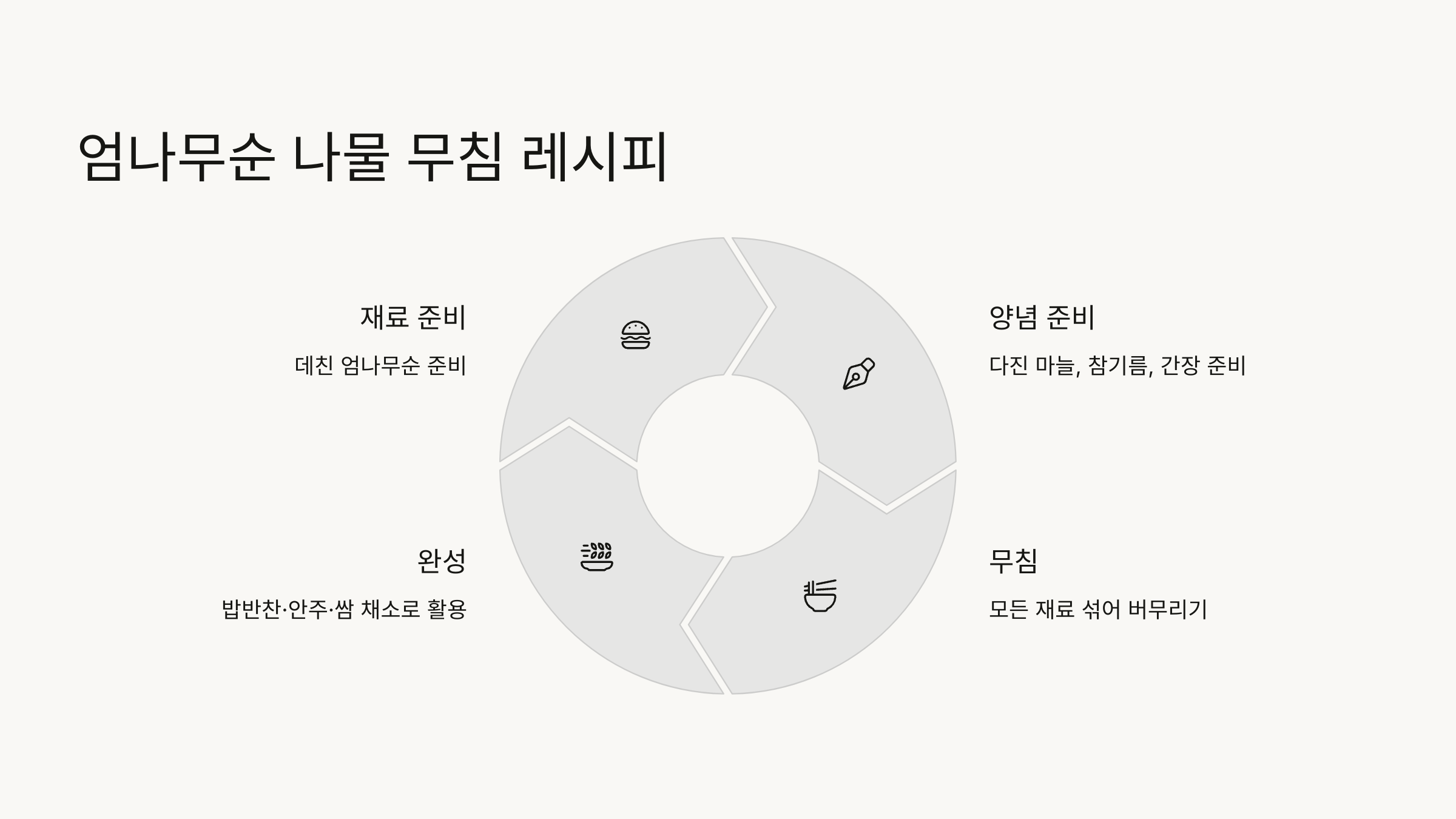 이제 본격적으로 엄나무순 나물 무침을 만들어 볼까요? 엄나무순의 특유의 향과 맛을 최대한 살리면서도 누구나 맛있게 즐길 수 있는 레시피를 소개합니다.