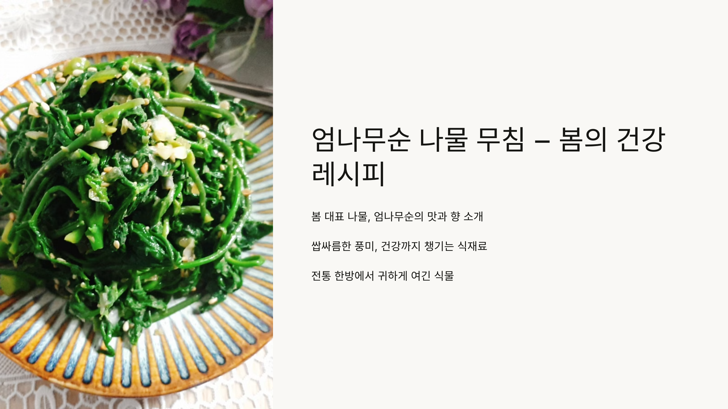 독특한 향과 쌉싸름한 맛이 일품인 엄나무순 나물 무침은 입맛을 돋우는 것은 물론 건강에도 좋은 식재료입니다. 오늘은 봄의 향기를 그대로 담은 엄나무순 나물 무침 레시피와 효능, 보관법까지 자세히 알아보겠습니다. 👩🍳