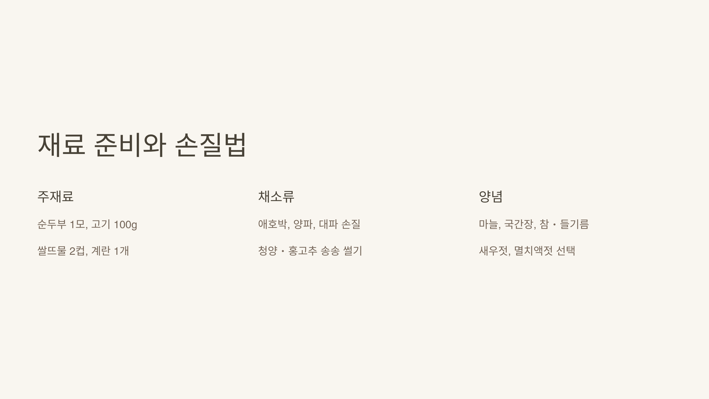 순두부찌개 기본 재료 📌