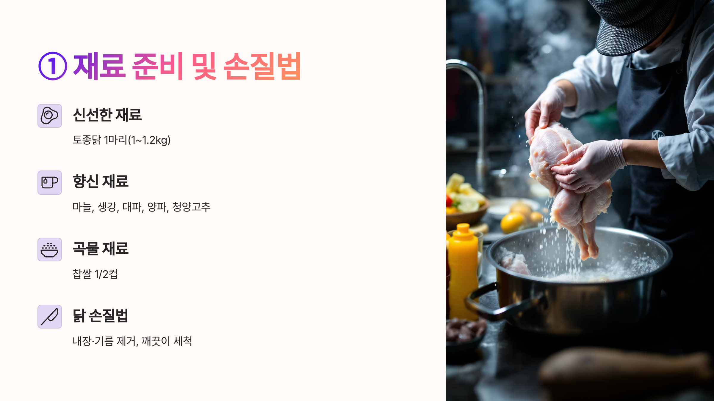 이제 본격적인 닭곰탕 만드는법의 황금레시피를 단계별로 알아보겠습니다. 처음 만드시는 분들도 쉽게 따라할 수 있도록 상세히 설명해드릴게요.