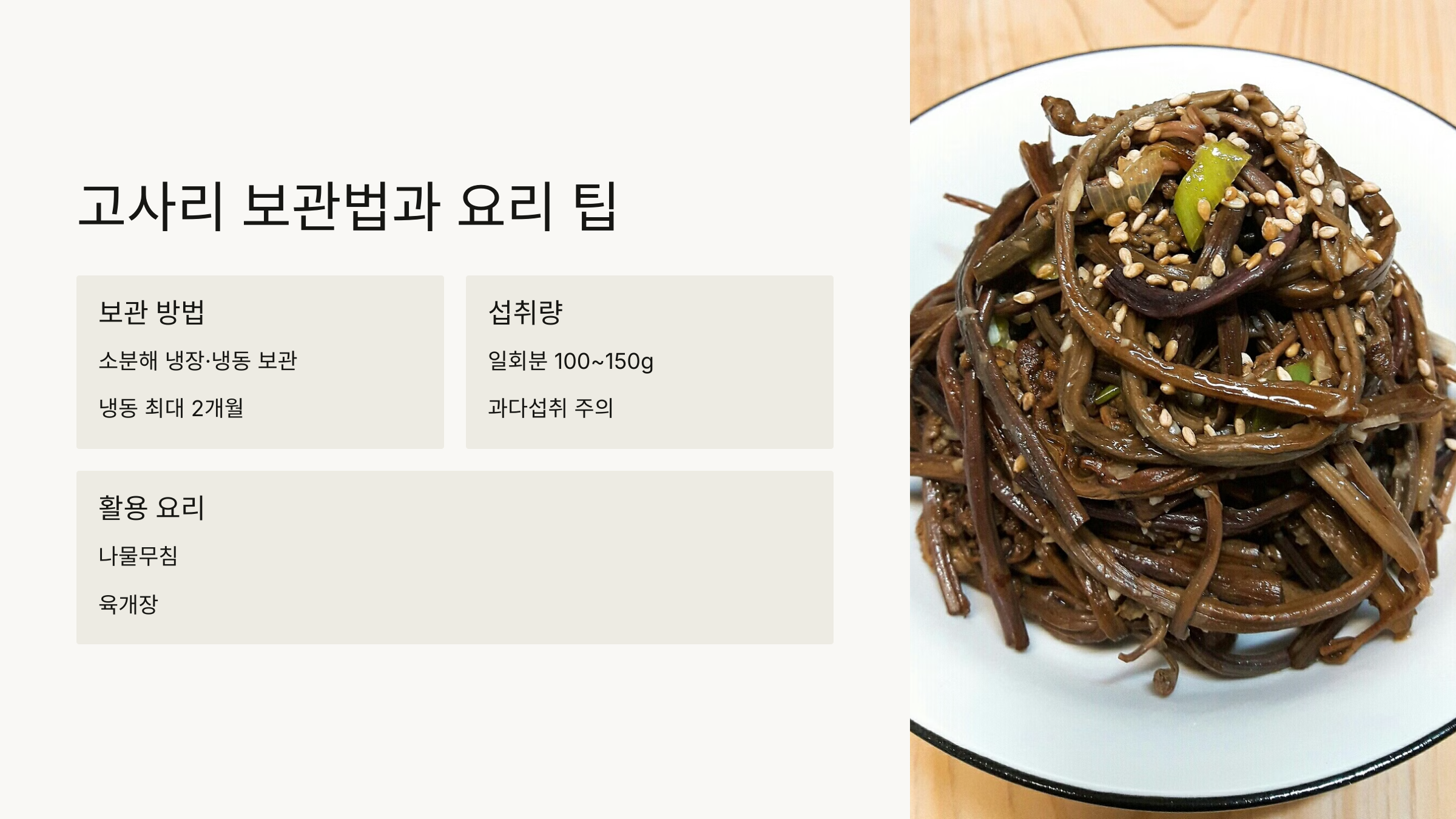 고사리 삶는법을 마스터했다면, 이제 맛있게 요리해서 먹는 방법과 오래 보관하는 방법도 알아볼까요?